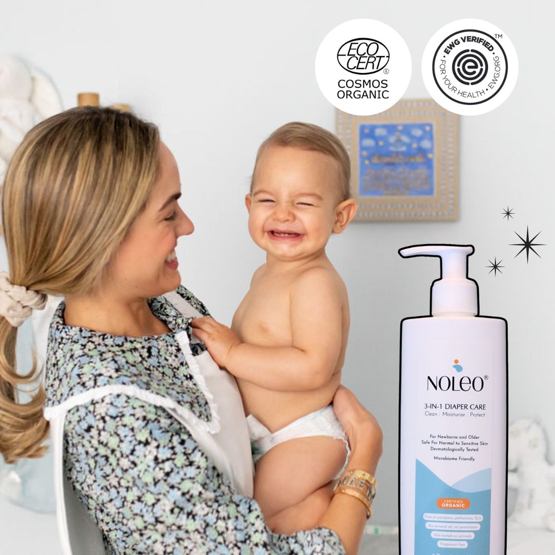 NOLEO 3-in-1 Diaper Care and Natural Skin care are made with five gentle ingredients that work together to cleanse, moisturize, and protect. The perfect solution for sensitive skin.
